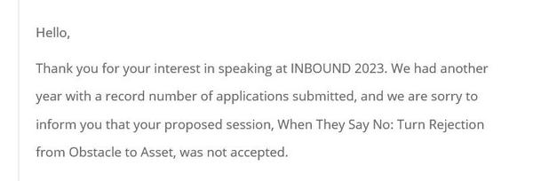 Perhaps I can attempt to do better next time by showing my proposal to some INBOUND veterans and ensuring I did my submission well.